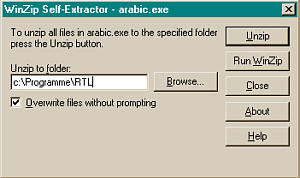 Starten sie das selbstextrahierende Ziparchiv arabic.exe. Wählen sie folgenden Pfad: