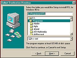 Verändern sie nicht den Installationsordner Programme/RTL. Führen sie die Installation mit Next weiter und folgen sie den Anweisungen.