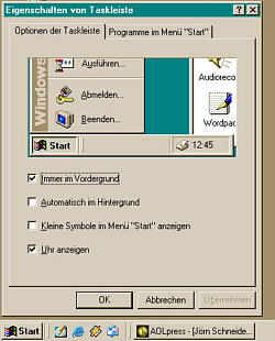 Gehen sie auf Start / Einstellungen / Taskleiste. Sie erhalten folgendes Bild: