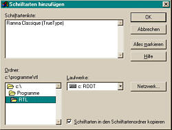 Wählen sie die Option Datei / Schriftart installieren und suchen sie den Pfad Programme/RTL